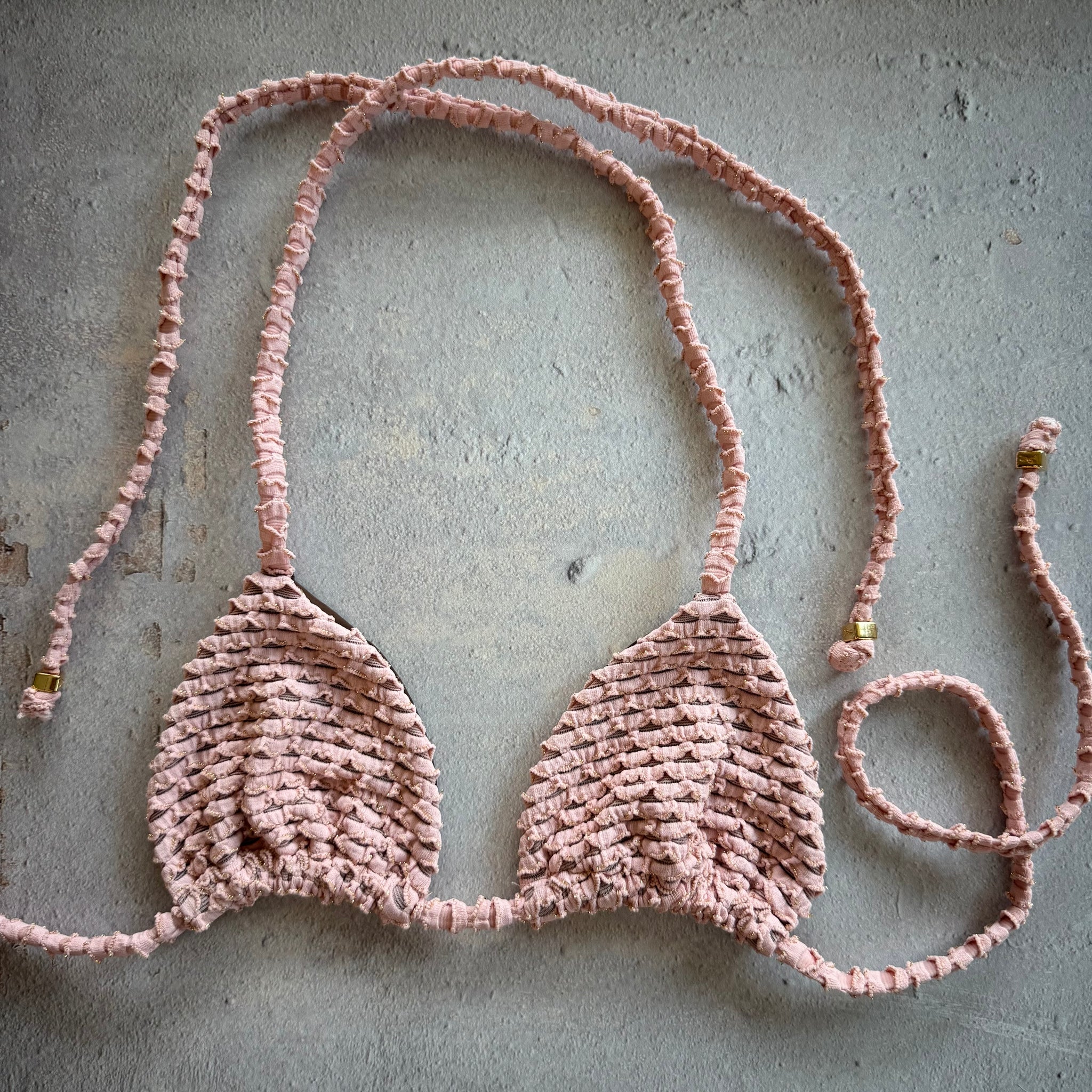Pink Morganite Mermaid Weave Textured Triangle Bikini Top