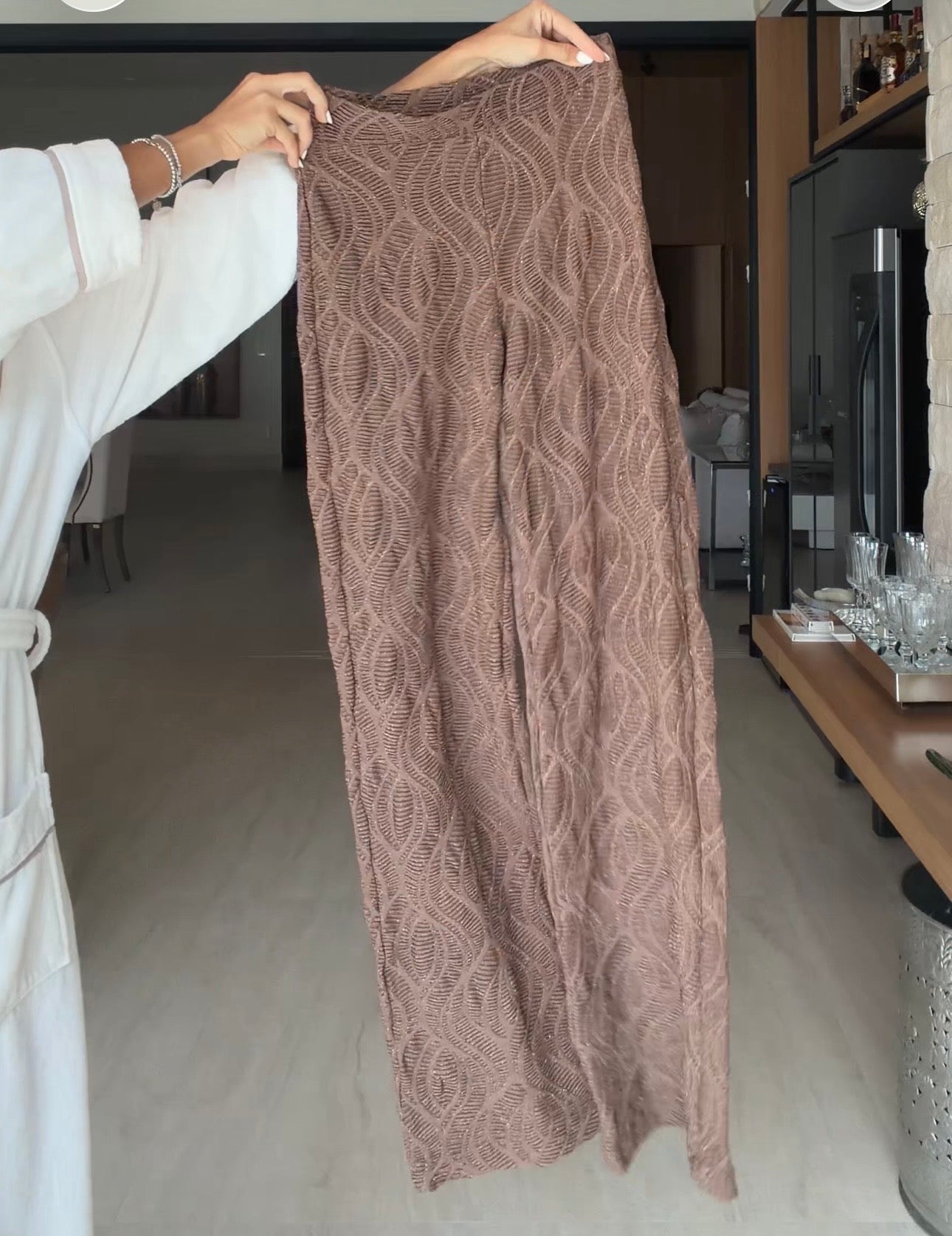 Mallorca Brown Sparkling Macrame Seamless Pants