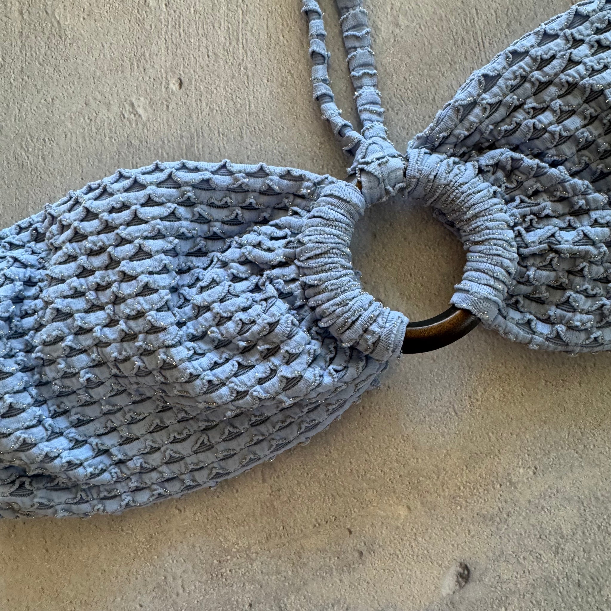 Blue Opalite Mermaid Weave Textured Strapless Bikini Top