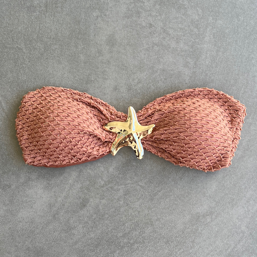 Toffee Brown Sparkling Mermaid Weave Textured Strapless Star Bikini Top