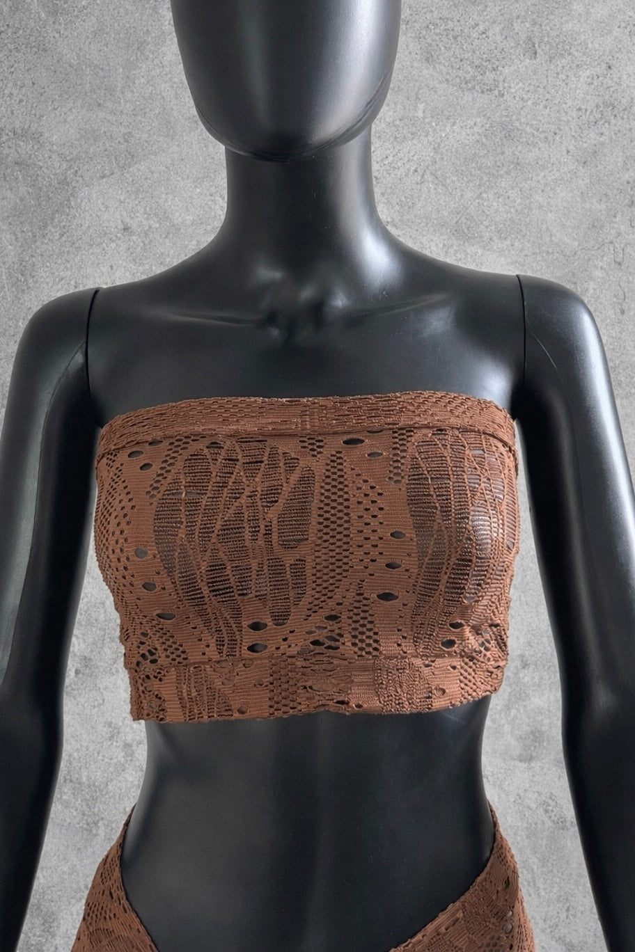 • Load image into Gallery viewer, Tulum Brown Macrame Bandeau Crop Top