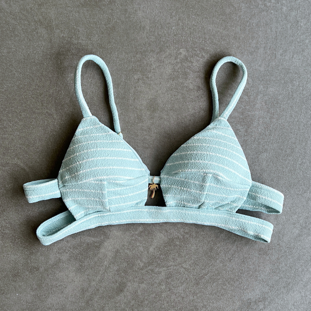 • Load image into Gallery viewer, Blue & White Seashore Striped Textured Vera Bikini Top